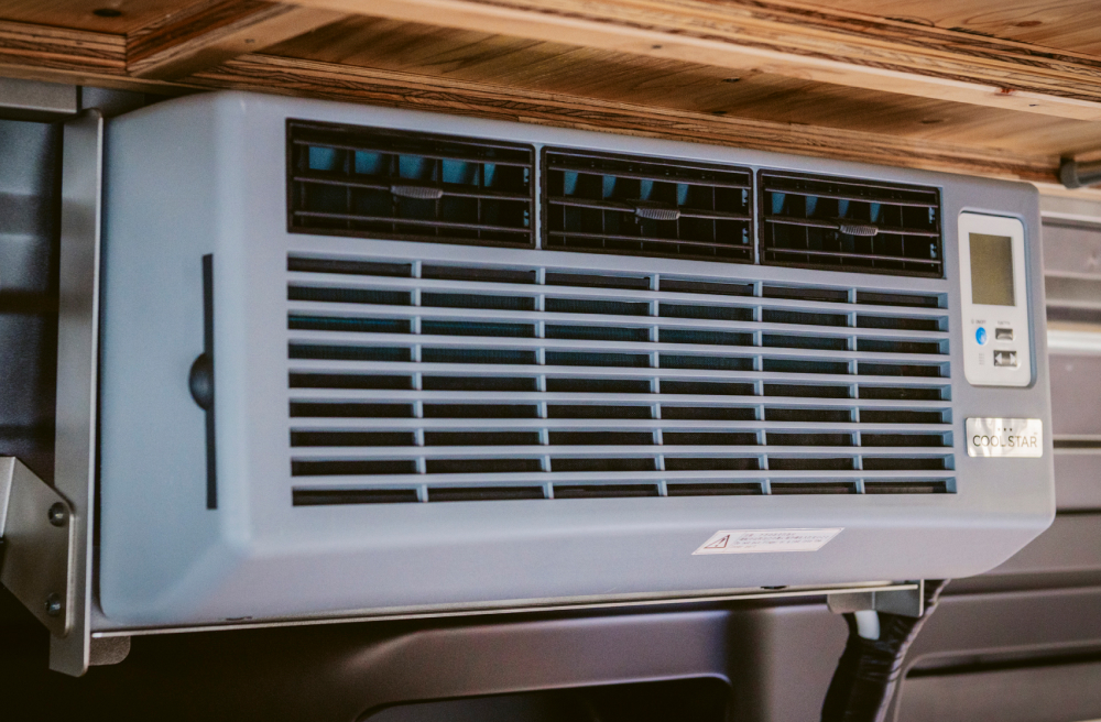 自然の中でも快適に過ごすためのクーラーを標準装備、連続約11時間稼働するので夜つけっぱなしも可能です。車載専用に開発された小型の室内機と静音設計が施された小型の室外機が最大の特徴で、冷房能力は家庭用クーラーの6畳用に匹敵し、日本特有の湿気を急速に取り除きます。