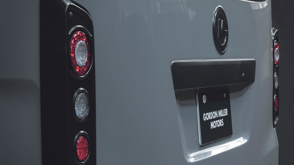 リアにはGORDON MILLERと一目見てわかるエンブレムを装着。G-01専用に開発されたオリジナルデザインの丸型LEDテールランプとリアバンパーカバー、ドアガーニッシュまで黒で統一することでベース車両を感じさせない唯一無二のデザインです。
