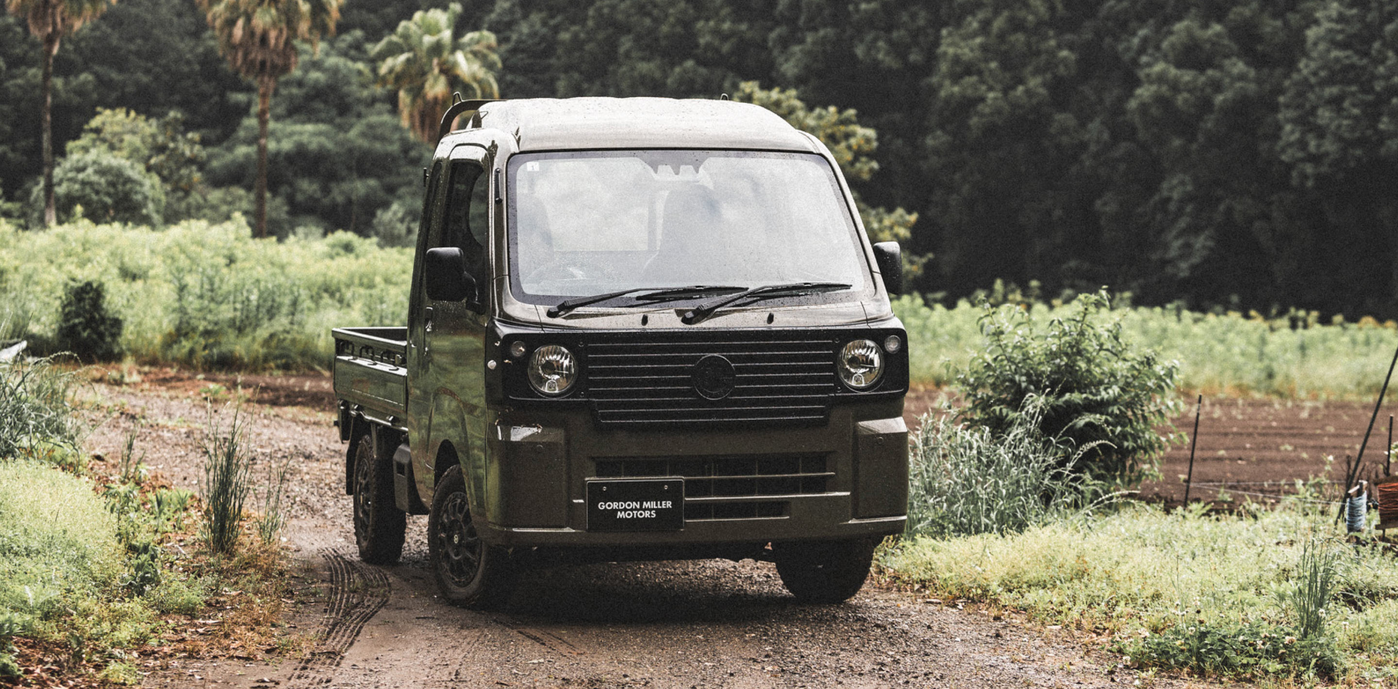 GMLWUは「働くをカッコよく」をコンセプトに働く車を発売します。第一弾の商品は、日本のあらゆる産業におけるインフラとも言える「軽トラック」をベース車両として、GORDON MILLERテイストに仕上げたGMLWU T-01。GORDON MILLER MOTORS GMLVAN V-01・S-01などと同様に丸目が特徴で、GORDON MILLERオリジナルカラーであるオリーブドラブ色及びコヨーテ色を纏ったカスタムコンプリートカーでのご購入に加え、フェイスキットのみのお取付けご購入も可能です。