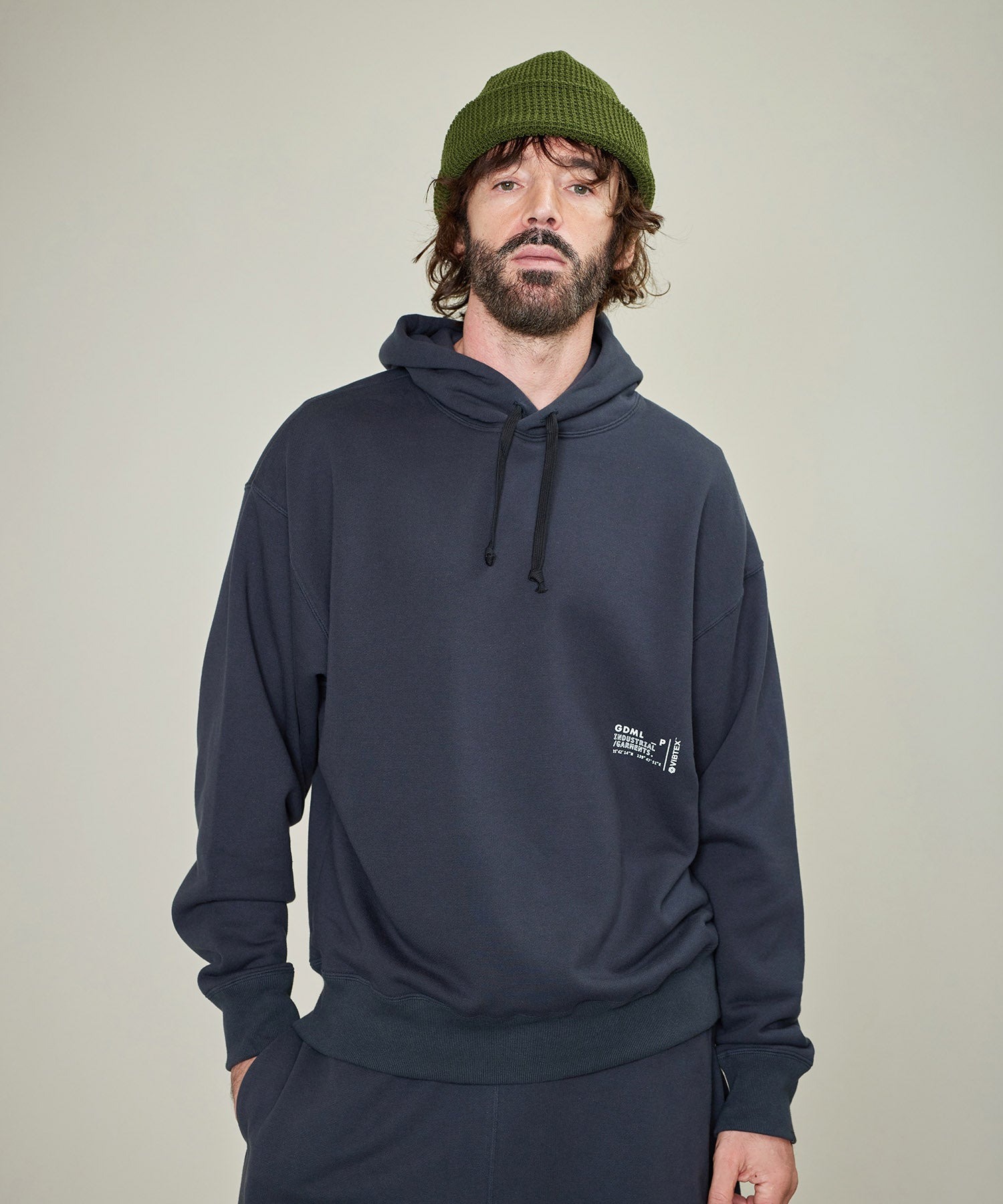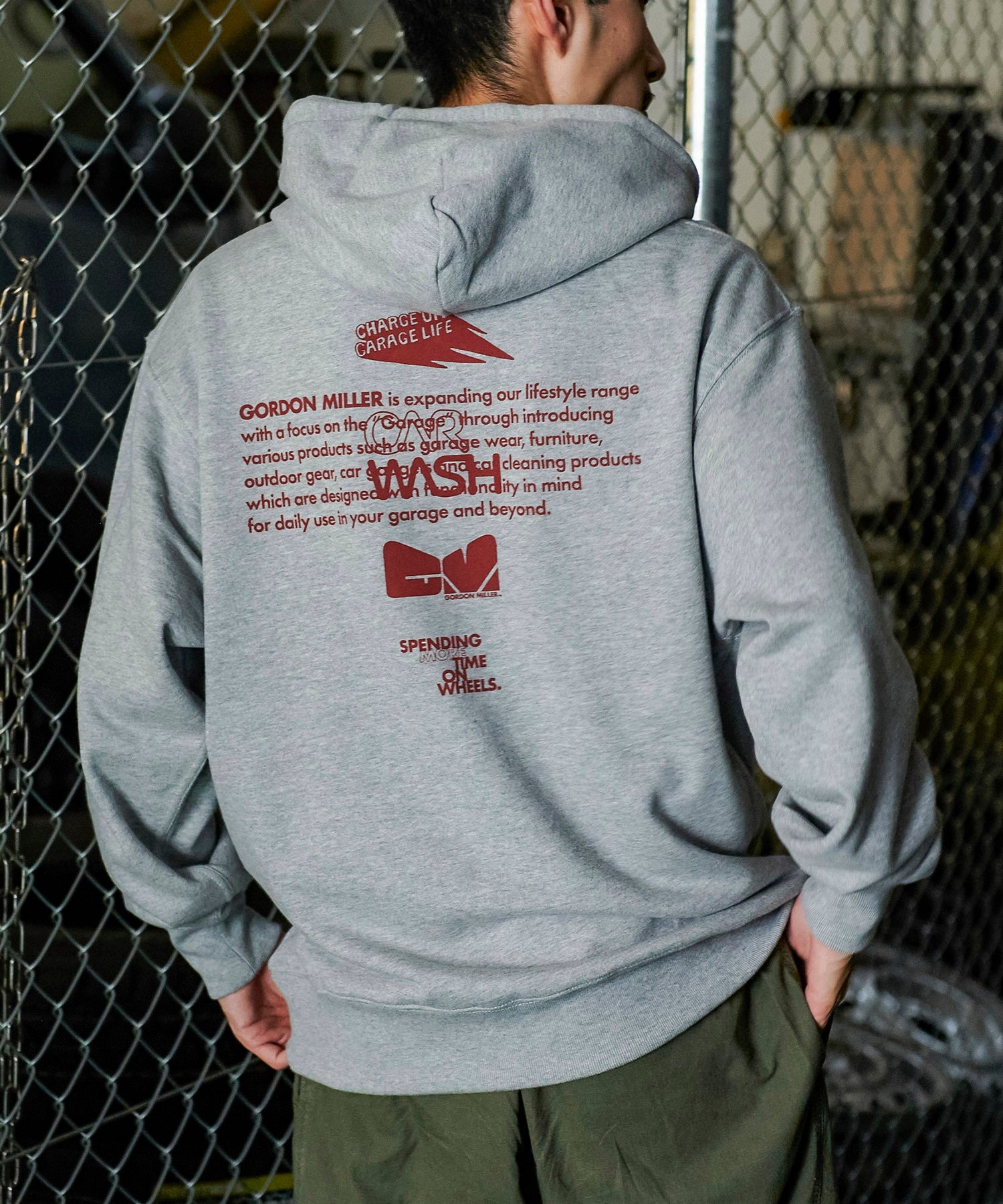 胸元には、従来のロゴを敢えて“欠けさせた”新しいGMグラフィックを配置。控えめながらも存在感を放ち、コーディネートにさりげないアクセントを加えます。素材にはコットン100%の裏毛スウェットを採用し、肌当たりの良さと耐久性を両立。適度な厚みがありながら重すぎず、秋・冬・春と長く使える汎用性の高さが特徴です。立体的なフードはシルエットが崩れにくく、着用時のバランスを整えてくれる仕様。