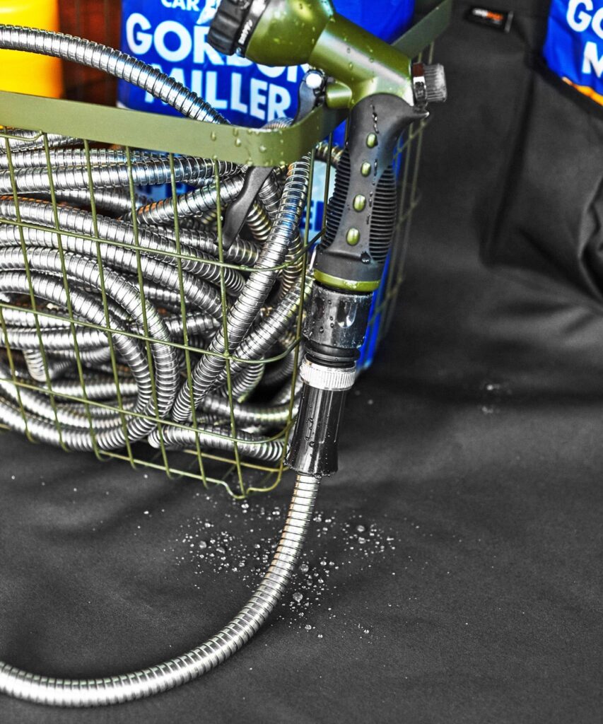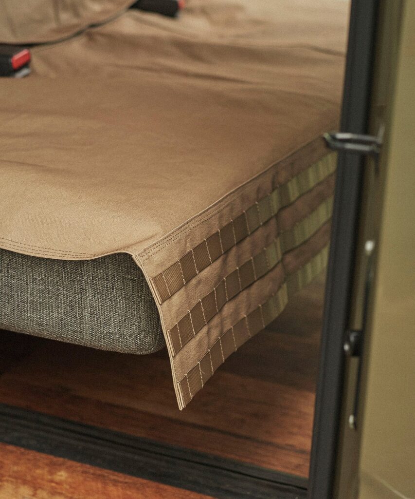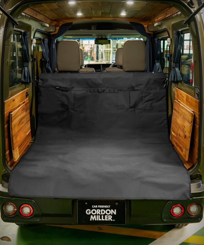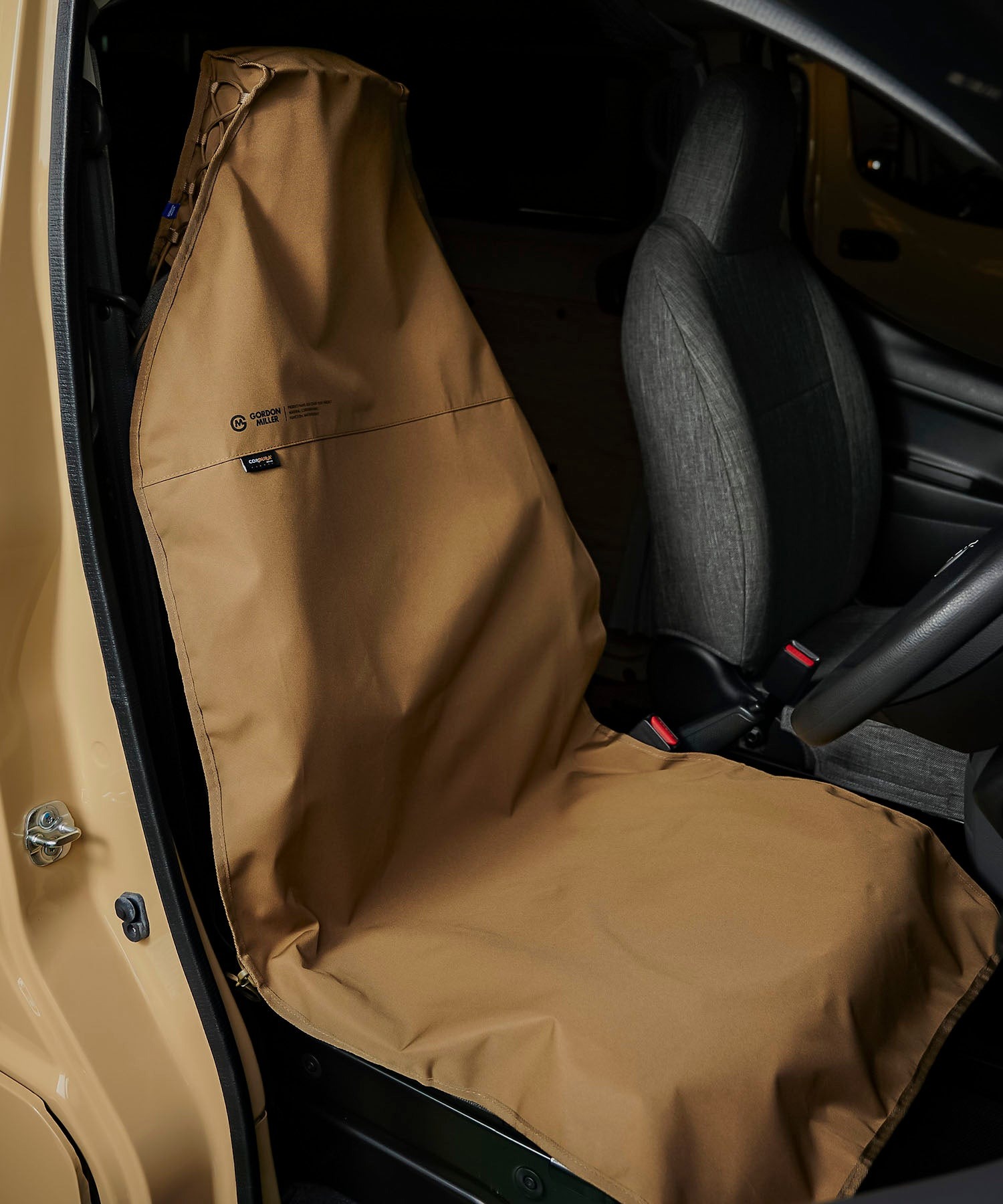 表地には、インビスタ社の CORDURA® FABRIC を採用。軽量でありながら、磨耗・引き裂き・擦り切れに強く、日常の使用やアウトドア・キャンプでの積載でも高い耐久性を発揮します。また素材は305デニールのオックスで、耐久撥水加工を施し裏面には PVC加工 をプラス。水滴・泥・汚れなどが付きにくく、後部座席をしっかり保護します。リアシートにかけるだけの簡単装着で、さまざまなシートベルト配置に対応。汎用サイズなので軽自動車からミニバンまで幅広い車種で使えます。ブラック、コヨーテ、ダークグレー、オリーブドラブの 4色展開。GORDON MILLERらしい無骨でスタイリッシュなカラーは、車内の雰囲気を損なわずおしゃれな空間演出にも◎です。使わないときは付属の収納袋に収められるため、車中泊やアウトドアの積載アイテムとしてもスマートに収納できます。