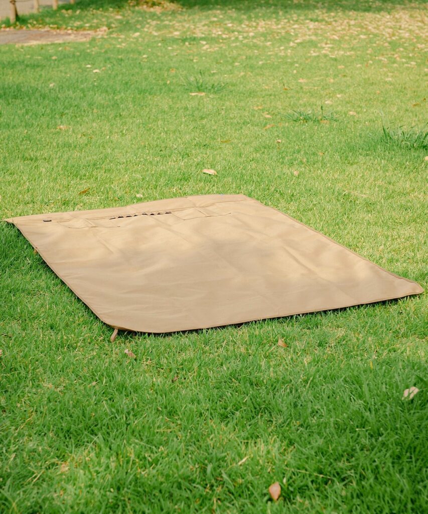 ラゲッジスペースの床面をしっかり保護するため、先ほどのリアシートと同様、耐久性に優れた CORDURA® FABRIC(コーデュラ生地) を採用。軽量でありながら摩耗や引き裂きに強い素材で、重いギアや工具、キャンプ用品などを積んでも安心です。ラゲッジに敷いてヘッド部分にベルトで固定するだけの簡単設置で、工具不要。シンプルな構造ながら、多くのクルマで使いやすい汎用サイズ設計です。ラゲッジ形状に合わせて折り曲げたり、簡単に取り外して洗ったりできます。汚れが付いても、シートを取り出して拭くだけでOK。撥水性が高い素材なので、丸洗い・水洗いにも対応しやすく、日常のメンテナンスもラクです。また、こちらはレジャーシートとしても使用できる2WAYタイプ。