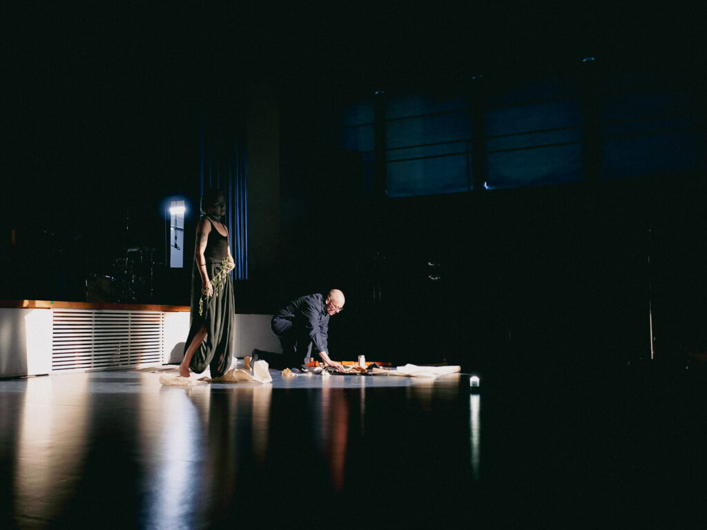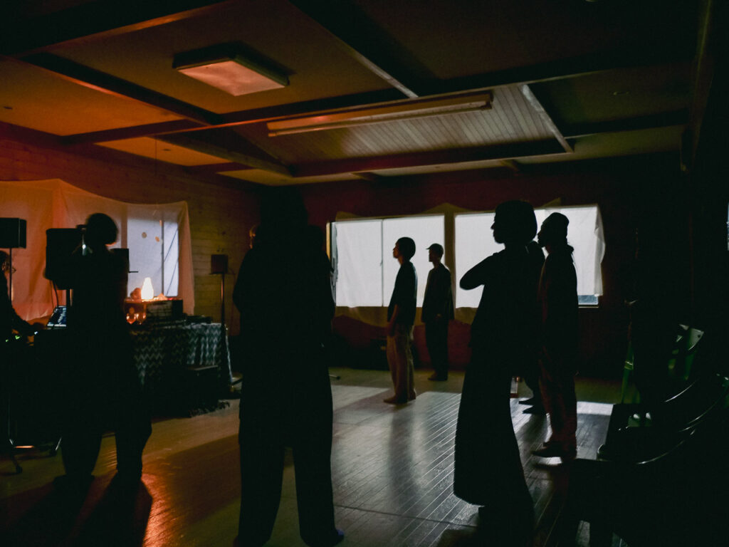 会場は、国東市国見町にある「みんなんかんホール」。コンクリートとガラスの建物の中に、柔らかな光が差し込んでいた。衣服や器、香りのブースが並び、地元の食材を使った弁当や、ナチュラルワイン、ジンなどが並んでいた。穏やかに人が集まり、それぞれが会話したり、ただ音を待つように過ごしていた。昼のプログラムがはじまると、ホールの中は一気に静まり返る。光と音、舞と沈黙。言葉ではないやりとりが空間のあいだに生まれていく。そして夜。照明が落ち、音がリズムを帯びていく。ダンスフロアには人が集まり、それぞれが自由に、思い思いに身体をゆらしていた。昼の沈黙とは対照的に、夜は音に身をまかせる時間。