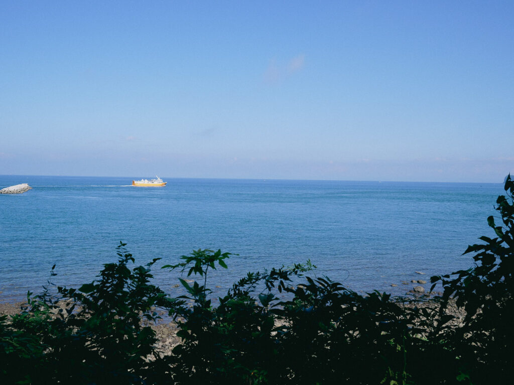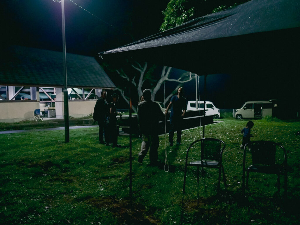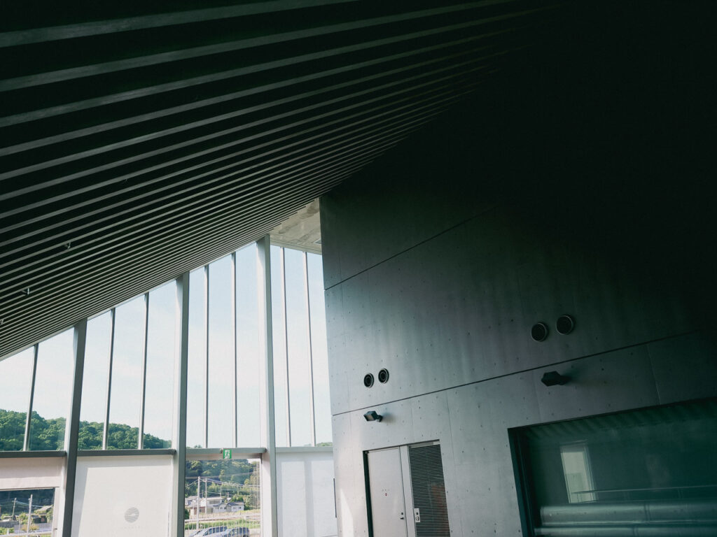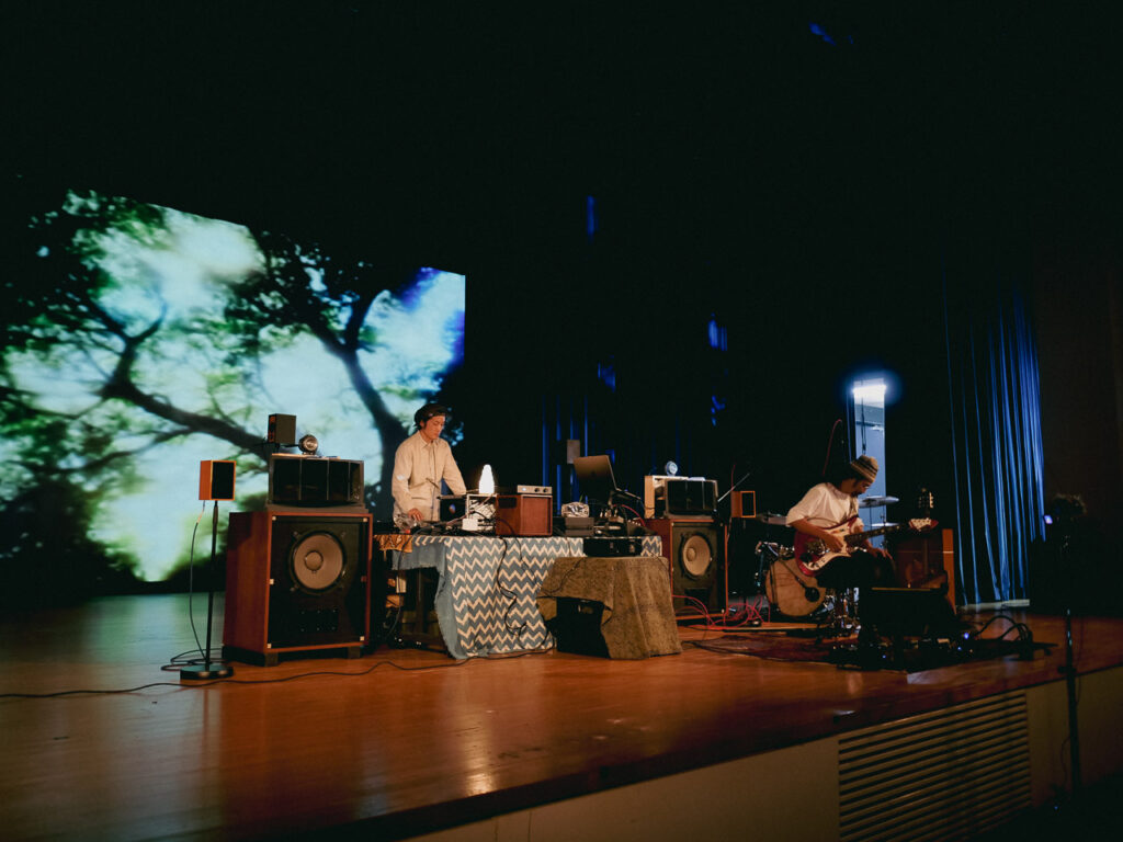 窓を開けると、潮の香りと草の匂いが混ざった空気が流れ込んできた。あたりが少しずつ明るくなり、ようやく自分がどんな場所にいたのかがわかる。海のそばの小さな丘に建つ「GongenCampPRHYTHM ― 音と沈黙のイベント」。普段は閉鎖されていて、こうしてイベントのときにだけ開かれる特別な場所だ。目の前には海と、静かな入り江。整えられすぎていない自然の姿がそのまま残っている。施設内の自然を堪能し、次の会場「みんなんかんホール」へ向かう。