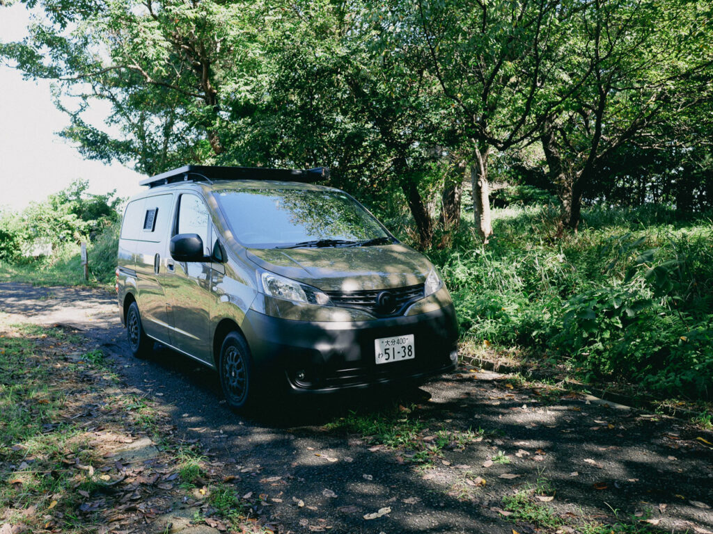 夕方、仕事を終えてバンライフカー「Vanlife Rental Car by GORDON MILLER」を出発。今回は、自宅で使っている折りたたみのシングルマットレスと布団を積み替え、車内にはクッションもいくつか入れた。特別な準備をしなくても、いつもの寝具があれば十分快適。車の中が、自分の部屋のように落ち着く空間になった。目的地は、国東半島の海沿いにある「GongenCamp」。夕暮れの道を走りながら、ゆっくりと旅のスイッチが入っていった。