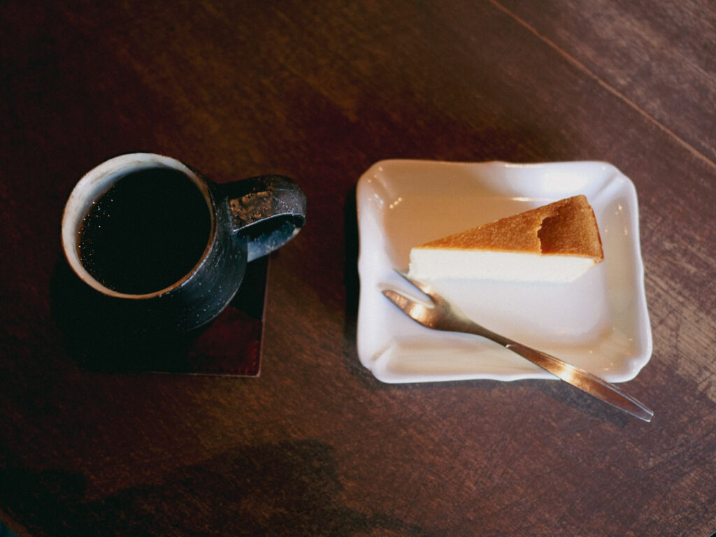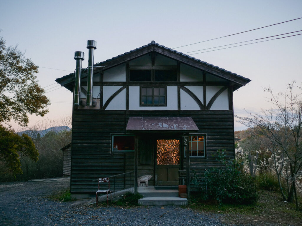 もみじの湯から車を走らせ、山を一本抜けたところで見えてくる「豆岳珈琲」。大きなイチョウの木と山小屋のような店構えが、静かな存在感を放っている。店内はゆったりした空気が流れていて、香ばしい珈琲と甘いケーキが体に染みわたる。大分に引っ越してくる前から噂にきいていて、一度寄りたいとおもっていたお店だ。スタッフの方と世間話をしながらゆったりと過ごす。