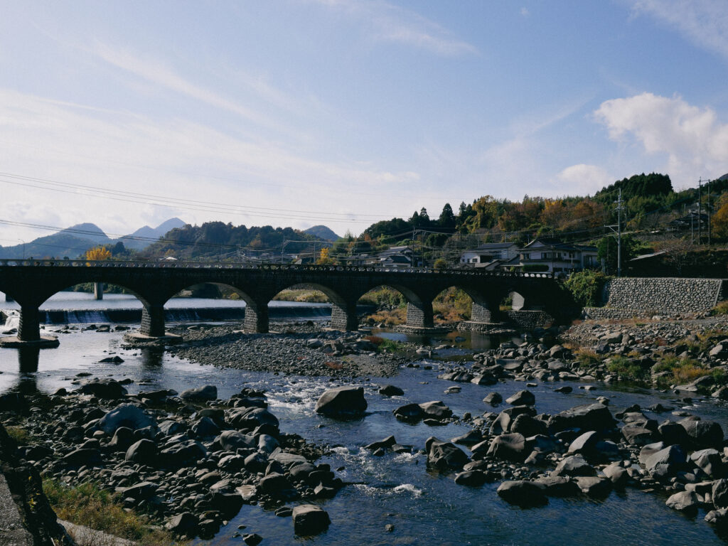 耶馬溪の風景の中でもひときわ存在感のある「耶馬溪橋」。地元の石材を使い、複数のアーチを連ねてつくる独特の構造が特徴で、全国でも数の少ない“石造アーチ橋”として知られている近くで見ると石が丁寧に積み上げられていて、当時の技術の高さがそのまま形になって残っていることに驚く。車で渡るだけでは気づきにくいけれど、少し離れた場所から眺めると、山並みとアーチがきれいに重なり、谷全体がひとつの絵のように見える。