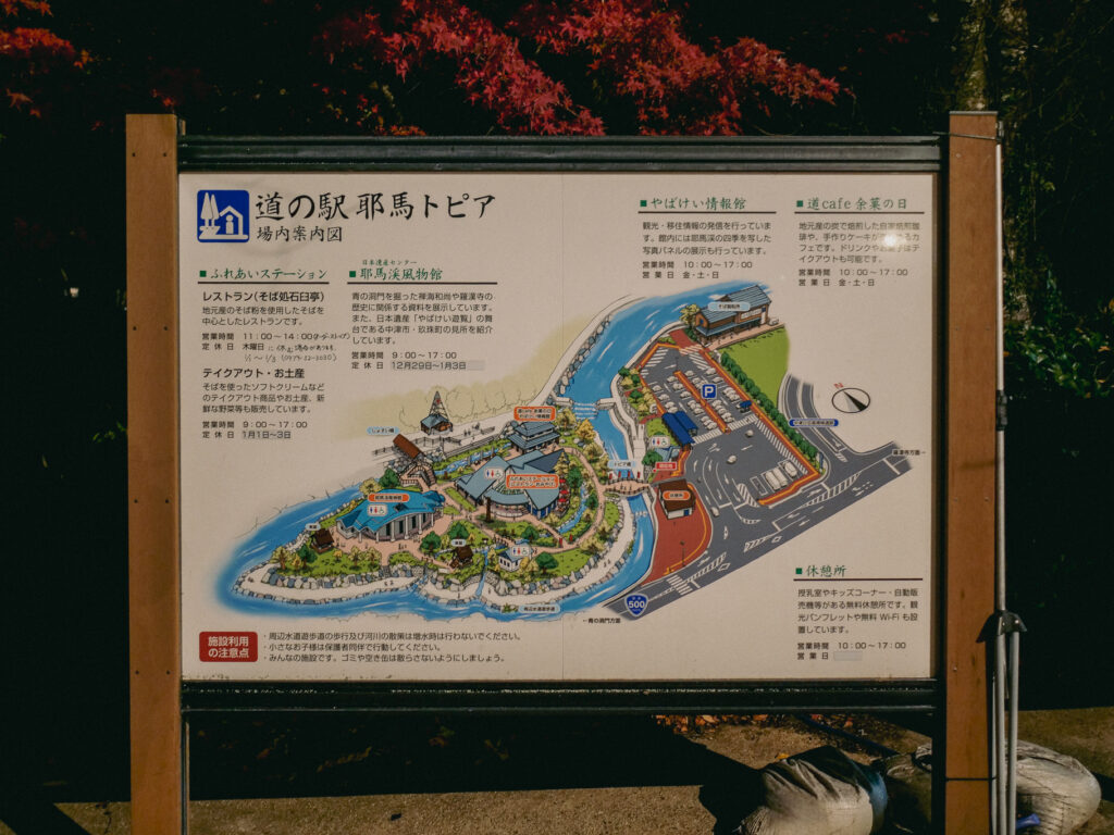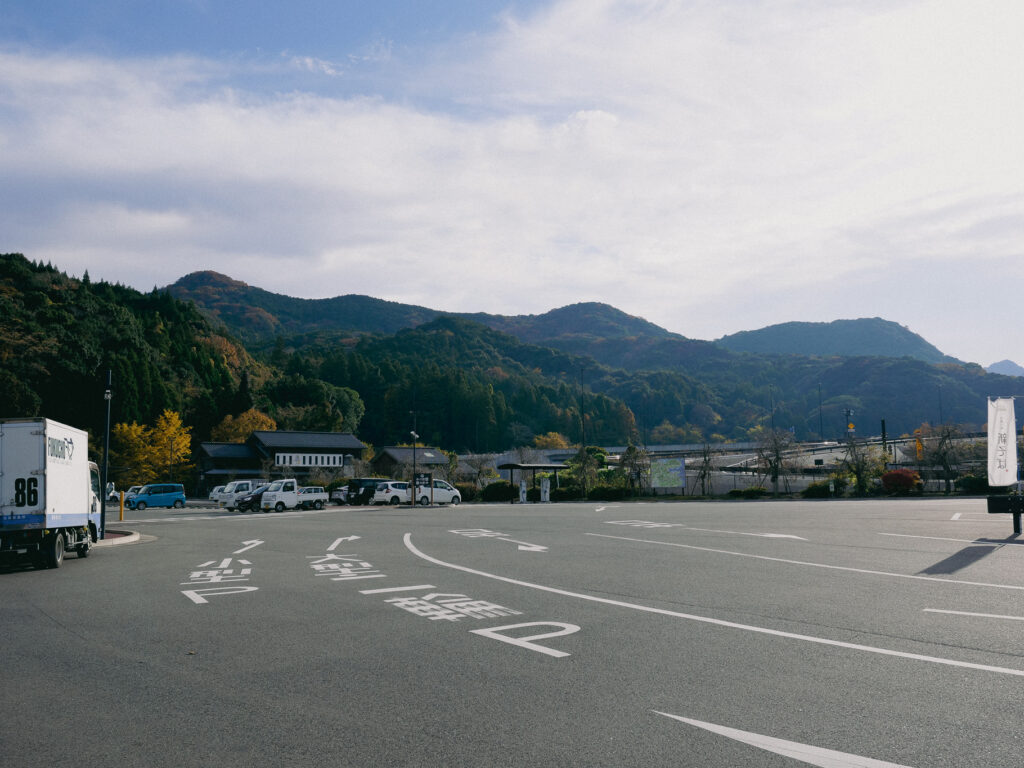 夜が明けて、山の向こうからゆっくり光が差し始めるころ、耶馬トピアの駐車場はまだ静かで、澄んだ空気の中に山の稜線だけがくっきりと浮かんでいた。耶馬溪風物館に入ると、ガラス越しの朝のひかりが展示パネルに反射してきれいだった。スタッフの方が声をかけてくれて、この谷の成り立ちや季節の見どころ、車でめぐりやすいルートまで丁寧に教えてくれた。旅の途中でこうして土地の話を聞けると、地図だけでは拾えない景色や寄り道に出会える。次に来るときは、まずここで相談して旅程を考えようと思った。