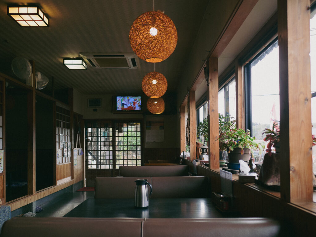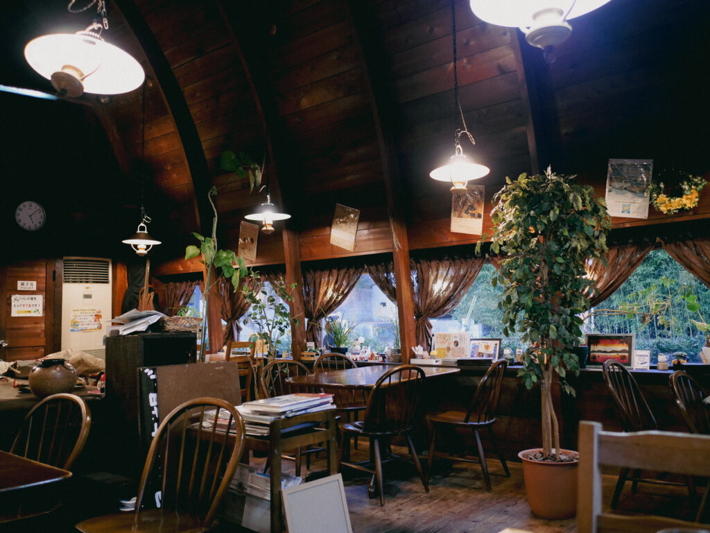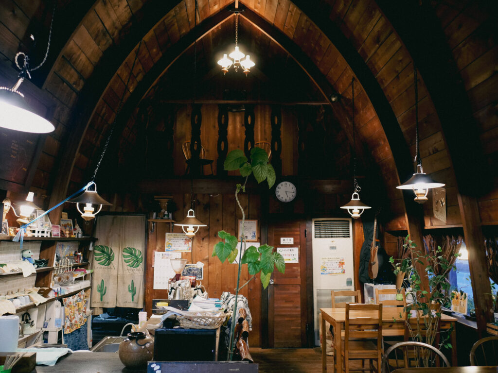 こちらも山香のお店から5分程度で行ける喫茶店。ごはんものからパスタにラーメン、唐揚げ、パンケーキまで、喫茶店らしいメニューと定食の両方が揃う。店主のやさしさが、料理や空間の隅々ににじんでいて、船底のようなアーチを描く天井が、どこか懐かしい落ち着きをつくっている。