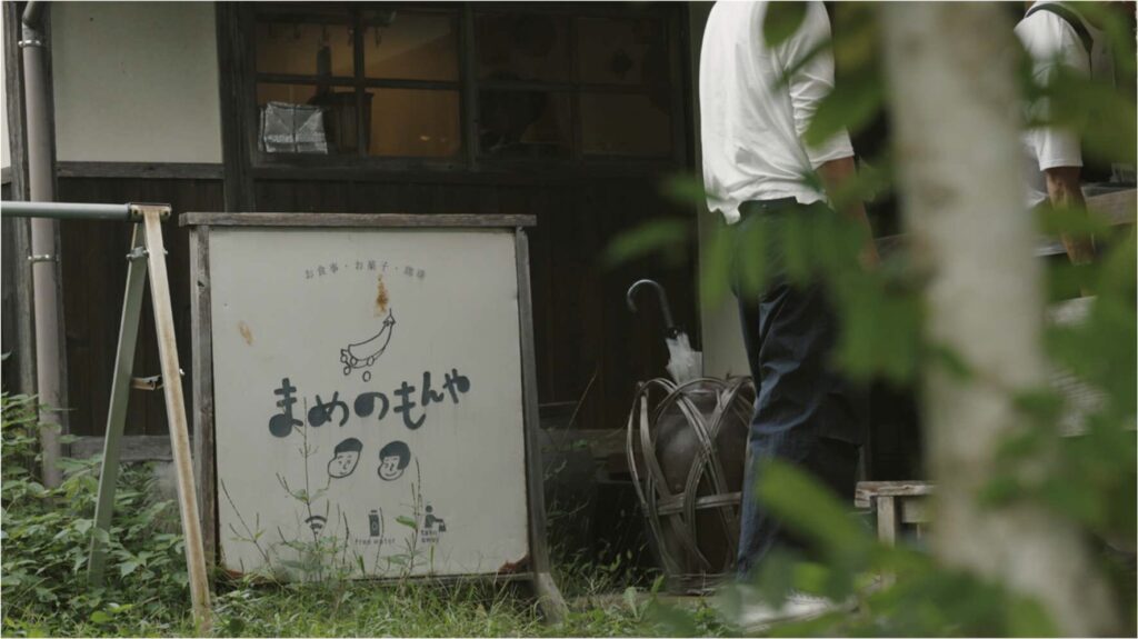 次に向かったのは、古民家カフェ「まめのもんや」。お弁当を予約しておいた。看板犬カマンちゃんがお出迎え。