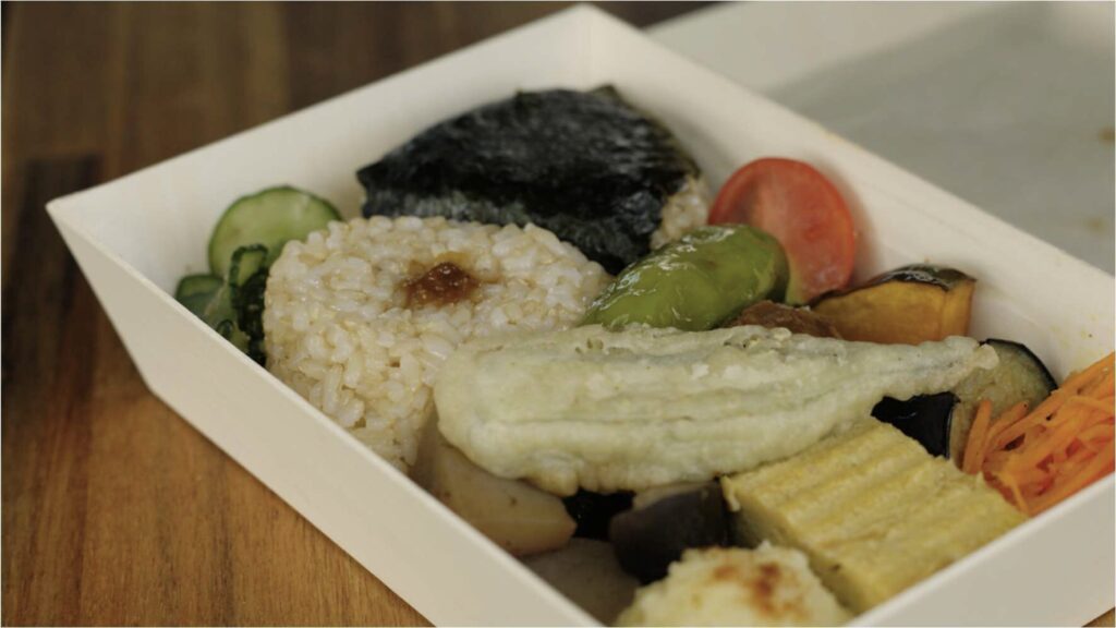 お弁当には、お品書き付き。お店でランチ提供しているメニューがぎゅっと詰まっている。玄米おにぎり 2 種、季節の地元野菜などなど。3 人で美味しくいただいた。今度はお店で頂こう。景色を眺めながら。何もしない。これこれ。バンライフらしい旅。