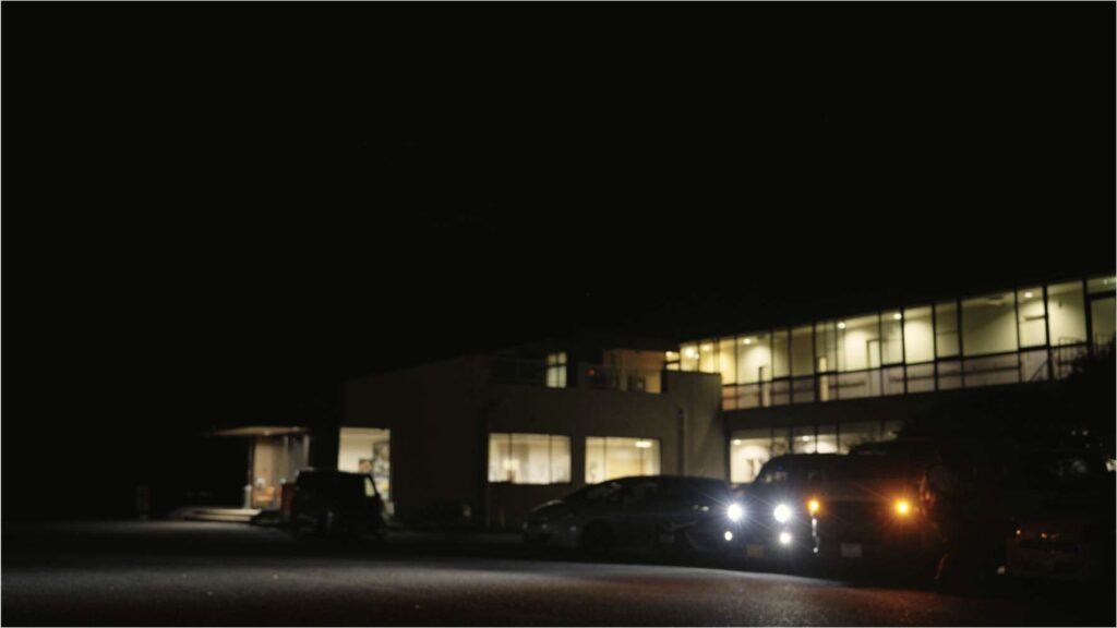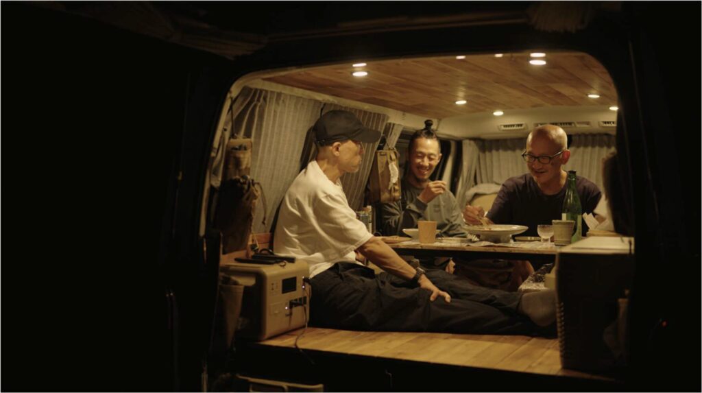 国東半島最東部近くの向田海岸。海岸際で車中泊が可能。しかも、トイレがきれい。到着後は、食後すぐに休めるよう、各自で車内を整える。そして、GMLVAN V-01 に集合し、車中飯スタート。キンキンに冷えたスパークリング日本酒と地魚のお造り。言うことなし。蒸籠蒸しにも挑戦し、冷たいもの、温かいものをバランスよく。車中飯だからと妥協はしない。その場で切ったスダチを搾るだけで、香りは一段と立つ。気の利いた調味料があるかどうかで、車中飯の満足度は驚くほど変わることに最近気づいた。やがて、クラフトビールやウィスキーへ夜中まで続く談笑。BGM は、波音と、Bluetooth スピーカーから流れる微かな JAZZ。決して広くはない車内で、おじさん 3 人が呑んでいるという、シュールな光景。でも、これこそがバンライフならではの楽しさなのかもしれない。車中泊ができるバンを手に入れたからこそ味わえる旅のかたちがある。豪華でも、映えるわけでもない。心から幸せだと思える、素朴な旅をしたかった。