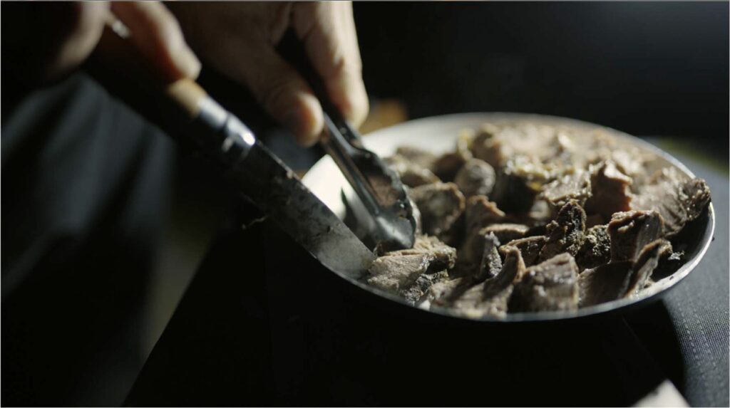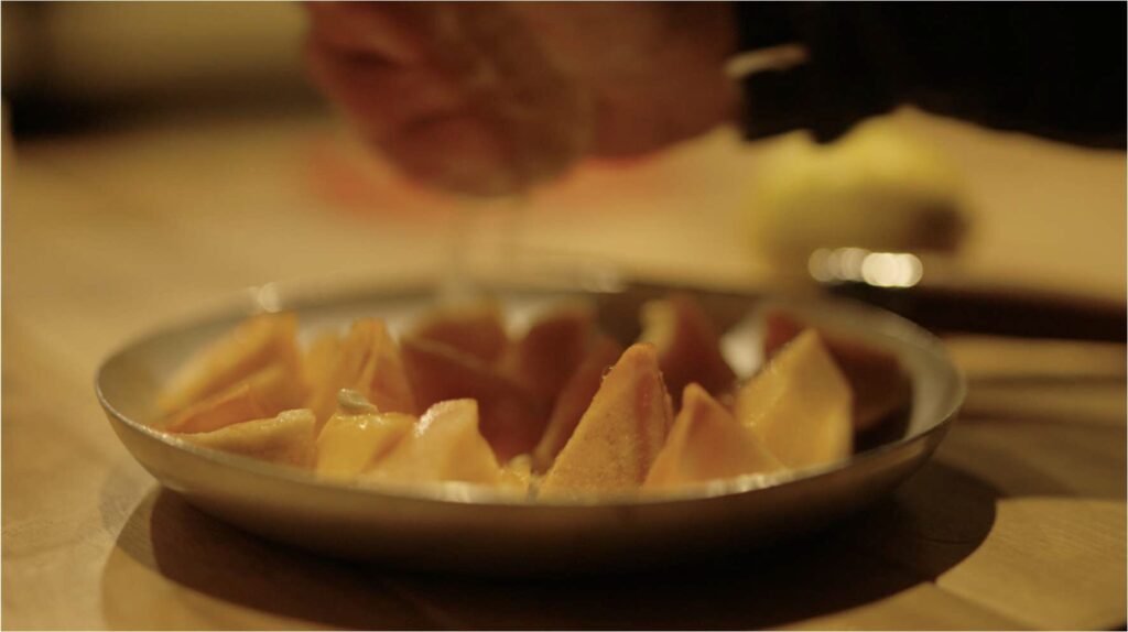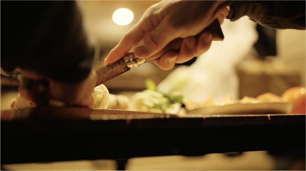 メインディッシュのジビエ BBQ 会場で乾杯。最高にうまい。焚き火を見ている時間は、やっぱり楽しい。海からの冷たい空気と混ざり、ちょうどいい温度になる。鹿肉はアルミホイルに包み、中まで火を通す。取り出して、ナイフで一口大に。脂は少ないが、高タンパク。食べる前に、もう一度燻す。香ばしさが立ち上がる。命をいただくことに感謝しつつ、夜が更けていった。