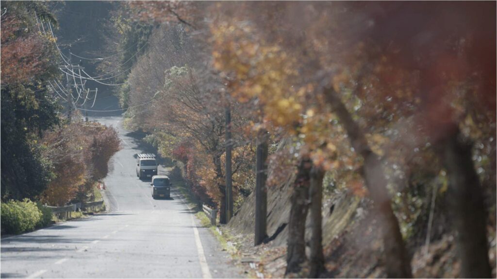 ひとまずは、高いところへ登って景色を楽しむことにする。このパターンは、いつも期待が高まる。トンネルを抜け、山道をひた走る。山の中だが、斜光が心地いい。先頭は小回りが効くクルマ、必死でついて行く。