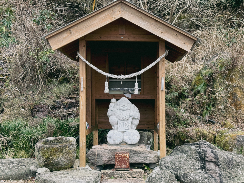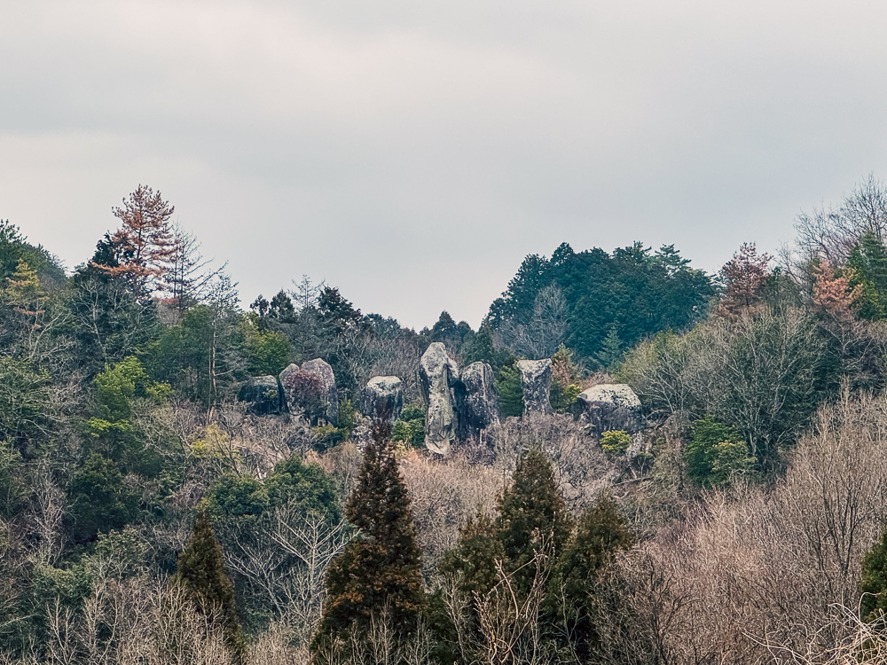 道路沿いに看板を見つけて車を停める。東奥山七福神。国道387号線沿いに突如現れる七つの大岩で、地元では七福神として祀られているそうだ。標高543mの高地にあり、見晴らしも良い。大きな観光地というより、道の途中で出会う景色のひとつ。こういう立ち寄りが、旅のリズムをつくってくれる。