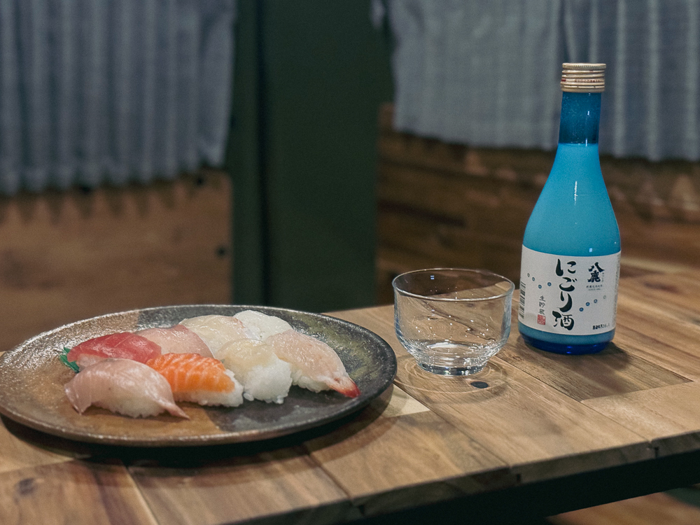 拠点に戻り、車内でゆっくりと夜の支度をする。スーパーで見つけた地元のにごり酒「八鹿」と、魚屋で買った寿司を並べる。にごり酒はやわらかな甘みとすっきりした後味があり、食事にも合わせやすい。パックのままでも十分だけれど、少しだけ器に移し替えると、それだけで今夜の食卓になる。外は静かで、遠くの音だけが聞こえる。移動の途中にいるはずなのに、ちゃんと落ち着ける場所があるのがうれしい。車中泊の夜は、こういう時間がいちばん贅沢なのかもしれない。