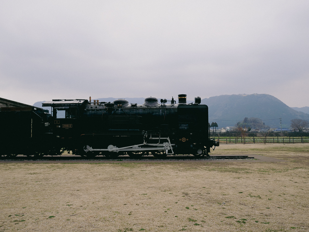 玖珠町に入り、立ち寄った豊後森機関車公園。静かに佇む機関車と、そのまわりに広がる空間。かつてここを走っていた時間を想像しながら、ゆっくりと歩く。少しだけ時間がゆるむような場所だった。
